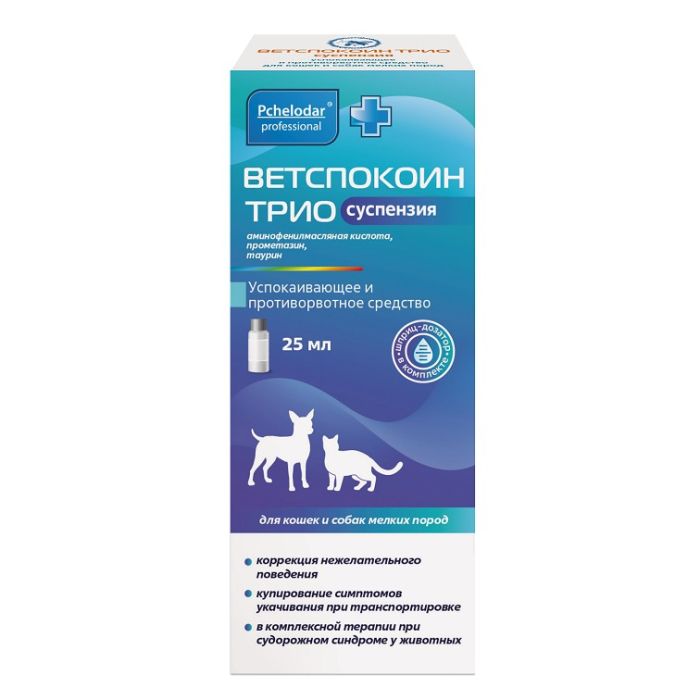 Ветспокоин Трио суспензия для кошек и собак мелких пород 25 мл