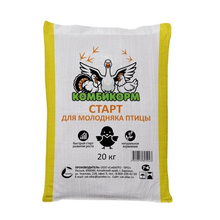 Комбикорм для цыплят СТАРТ мешок 20 кг Sibagros
