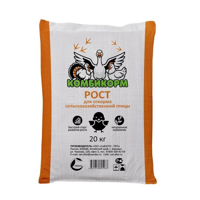 Комбикорм для цыплят РОСТ мешок 20 кг Sibagros