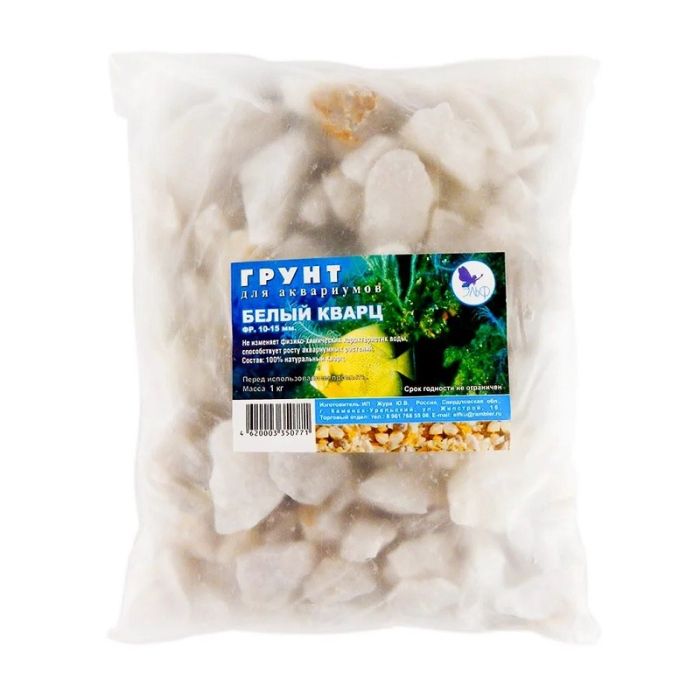 Грунт для аквариума Белый кварц фракция 10-15 мм пакет 2кг