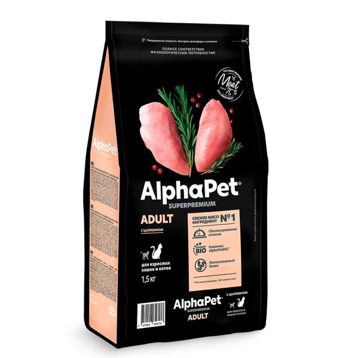 AlphaPet Superpremium для взрослых кошек и котов 1.5 кг цыпленок