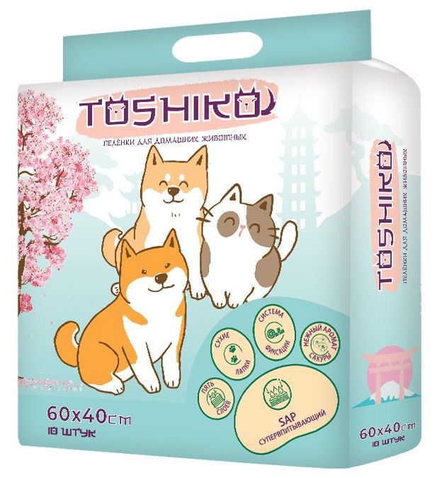 Пеленки впитывающие для животных Toshiko 60 * 40 см 10 шт Сакура
