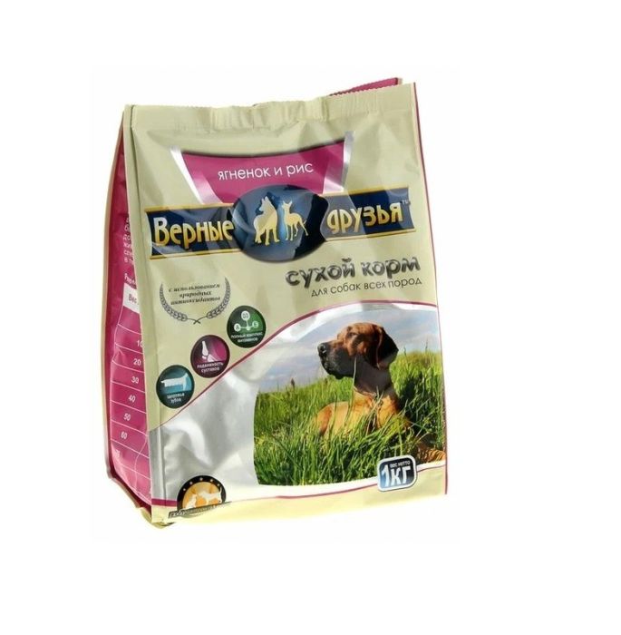 Верные друзья корм сухой для собак 1 кг с ягненоком и рисом