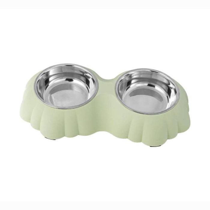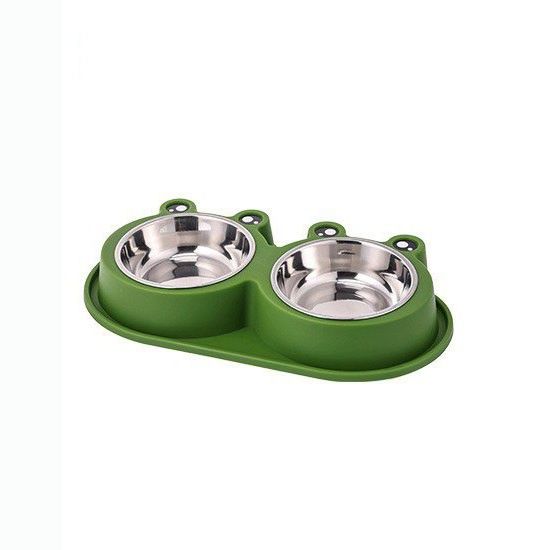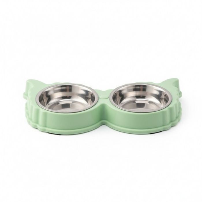 Миска двойная 2*400 мл зеленая 99-1197 с металлическими мисками