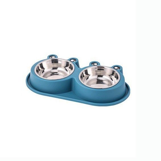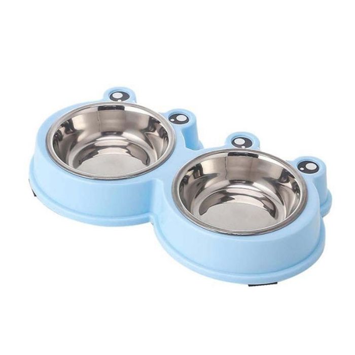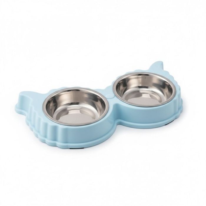 Миска двойная 2*400 мл синяя 99-1198 с металлическими мисками