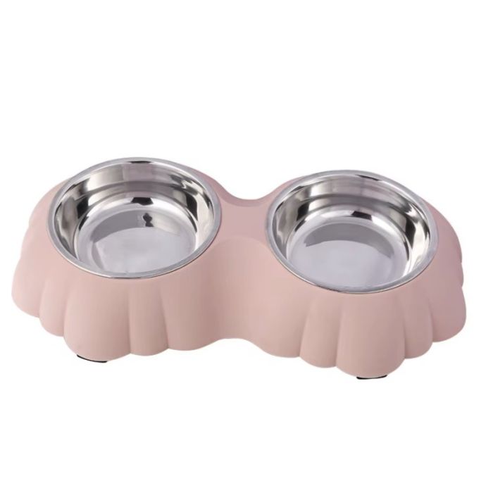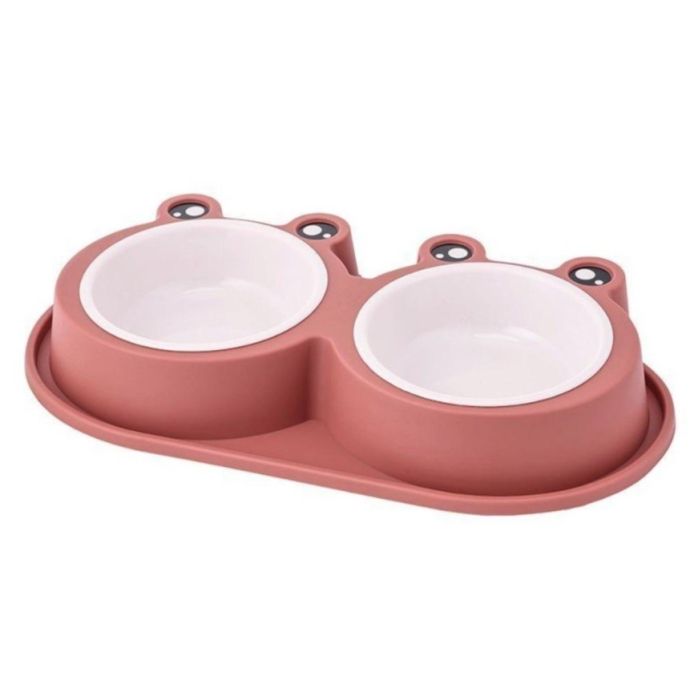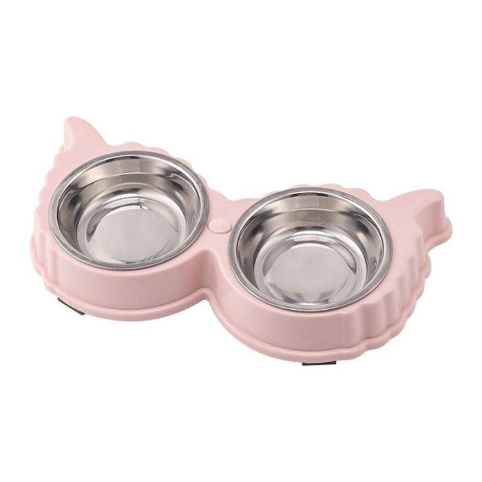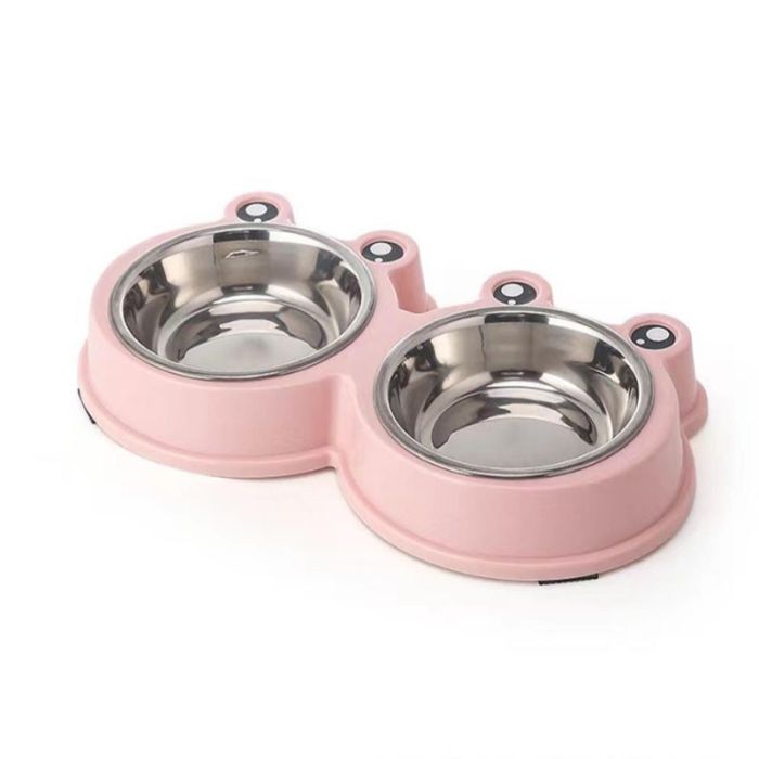 Миска двойная 2*150 мл розовая 99-0692 с пластиковыми мисками