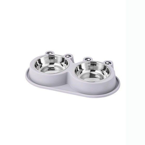Миска двойная 2*150 мл серая 99-0681 с металлическими мисками