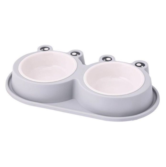 Миска двойная 2*150 мл серая 99-0681 с пластиковыми мисками