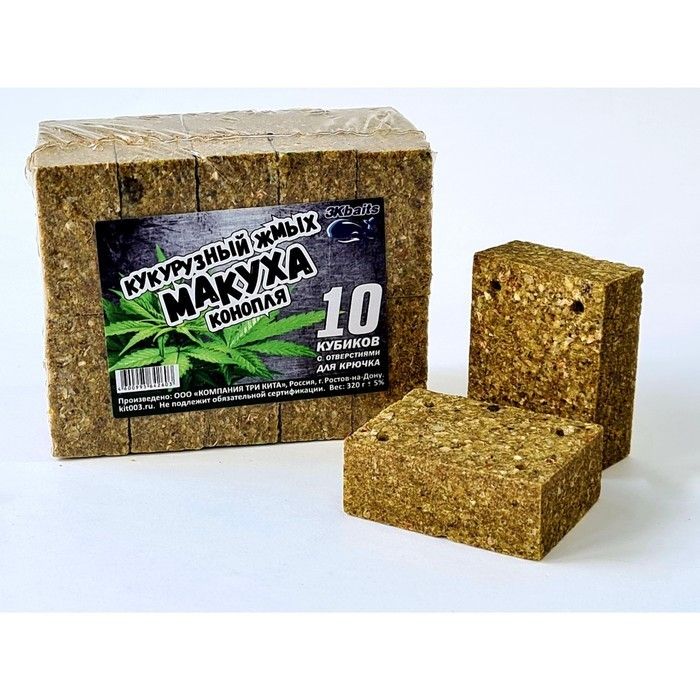 Макуха (кукуруз.жмых) с отверстием 320гр уп.10 кубиков Конопля