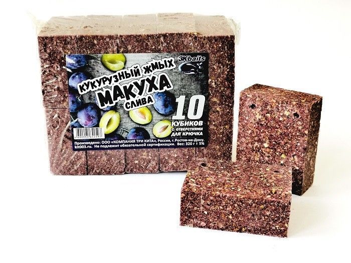 Макуха (кукуруз.жмых) с отверстием 320гр уп.10 кубиков Слива