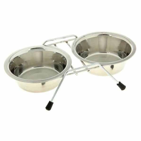 Миска метал двойная 360мл 1401В с подставкой