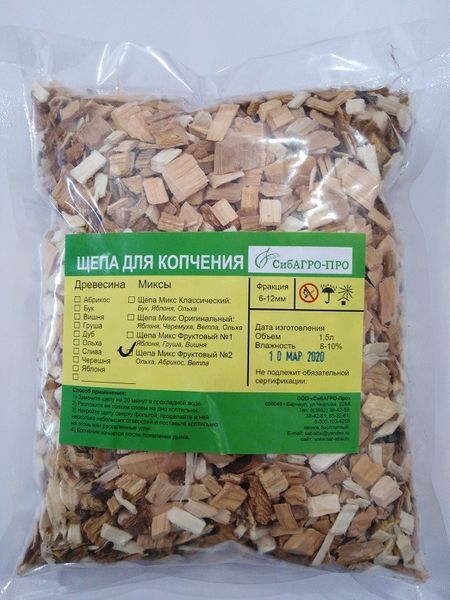Щепа для копчения Микс фруктовый№2 (ольха,абрикос,ветла) 1500 мл